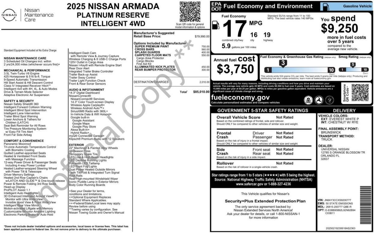 2025 Nissan Armada Platinum Reserve AWD