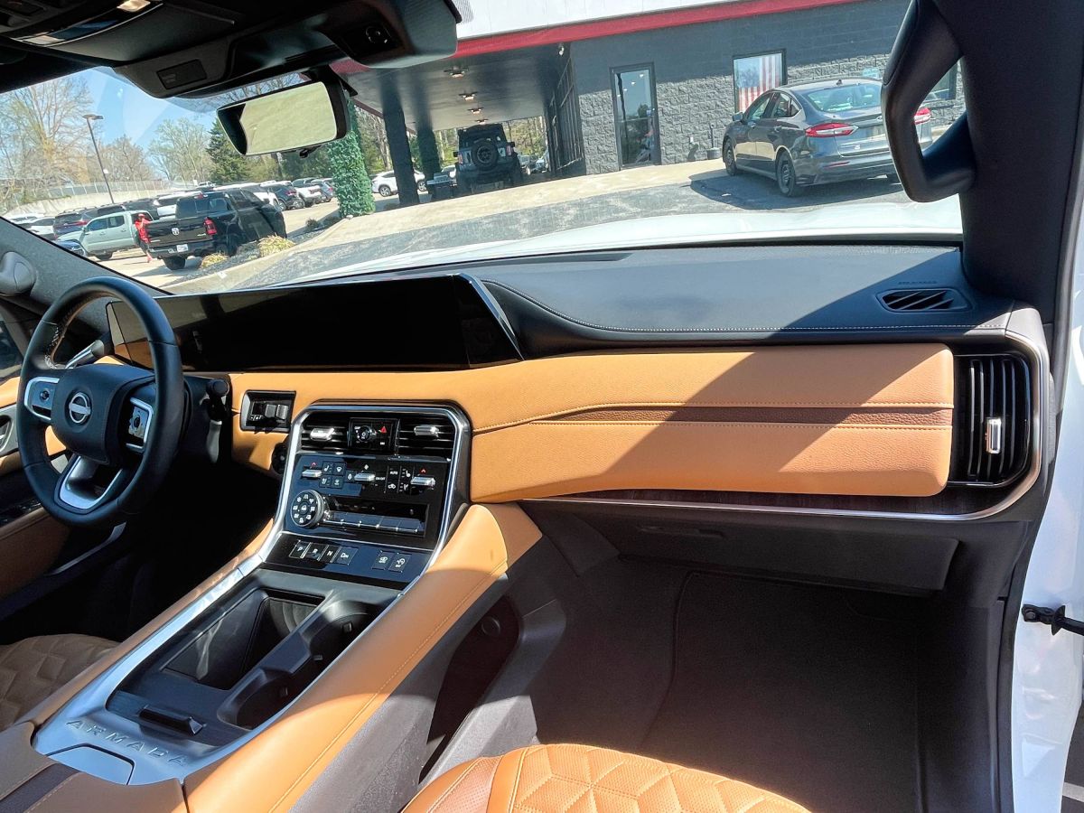 DRIVENATION PriceWholesale Pricing & Discounted Price with Financing Package- 20k back of MSRP with only 6k miles. Loaded Armada Platinum Reserve AWD. Extra clean inside and out with a comfortable leather interior that includes 3 rows for a total of 7 seats, heated and ventilated front seats, heated rear seats and steering wheel, a 14.3 inch touch screen display with navigation, a panoramic sun roof, a head-up display, Apple CarPlay, and Android Auto. Driver assist features include lane assist and adaptive cruise control. One owner vehicle. Priced to sell. We make saving money very simple-the Best prices, Best Financing, and Best Service Contracts in the Midwest. Call or text DriveNation and Save Today. (573)-524-2400.